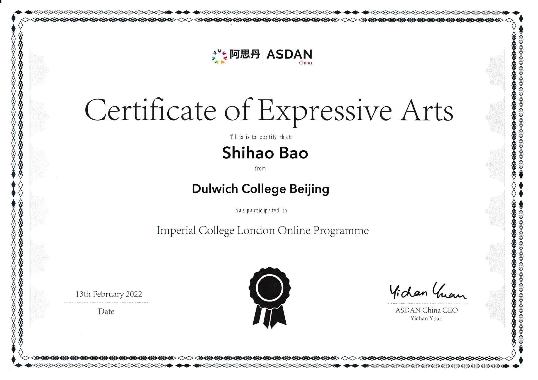 2022 Certificate of Expressive Arts of Imperial College London Online Program