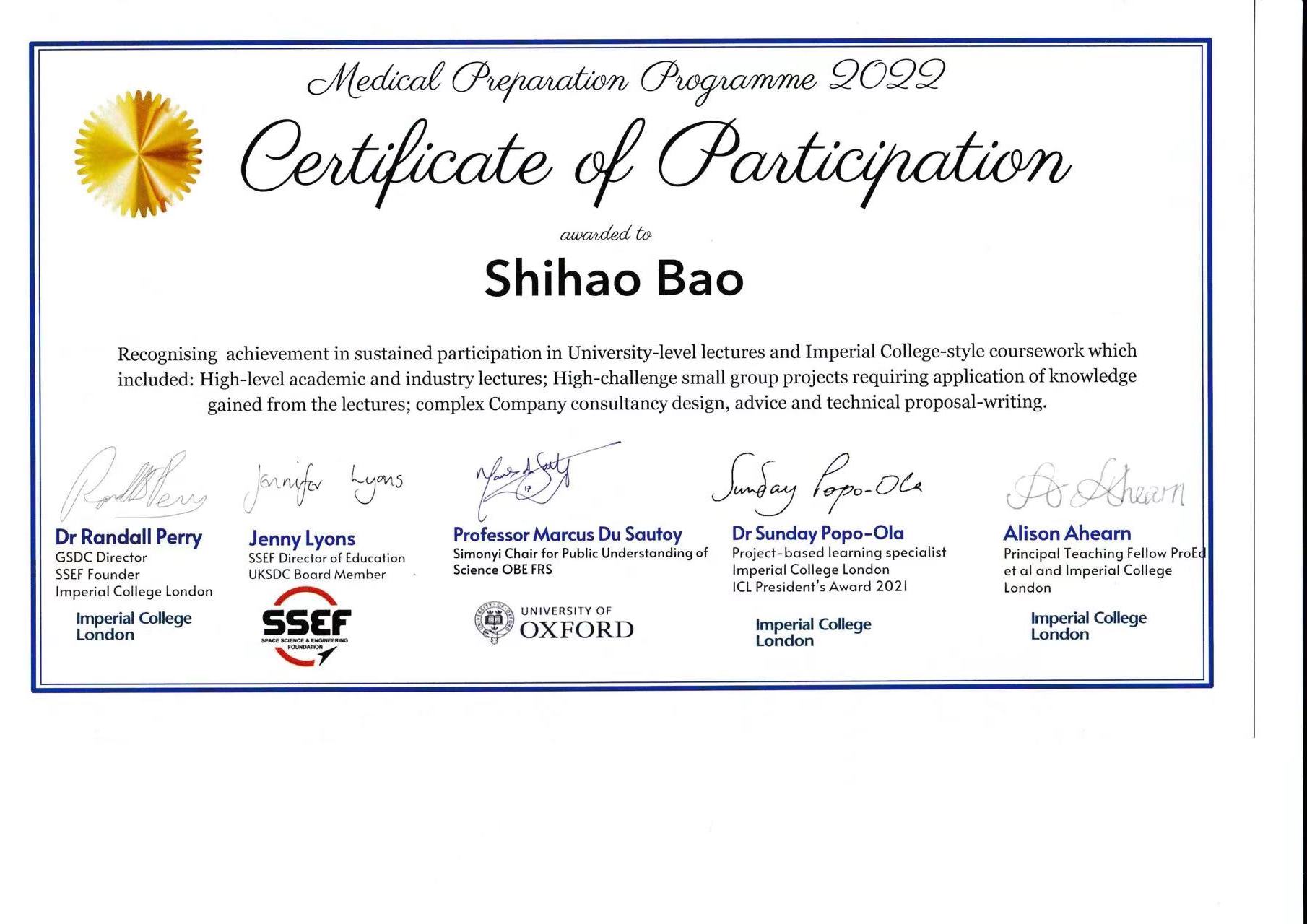 2022 Medical Preparation Program: University-Level lectures and technical proposal writing