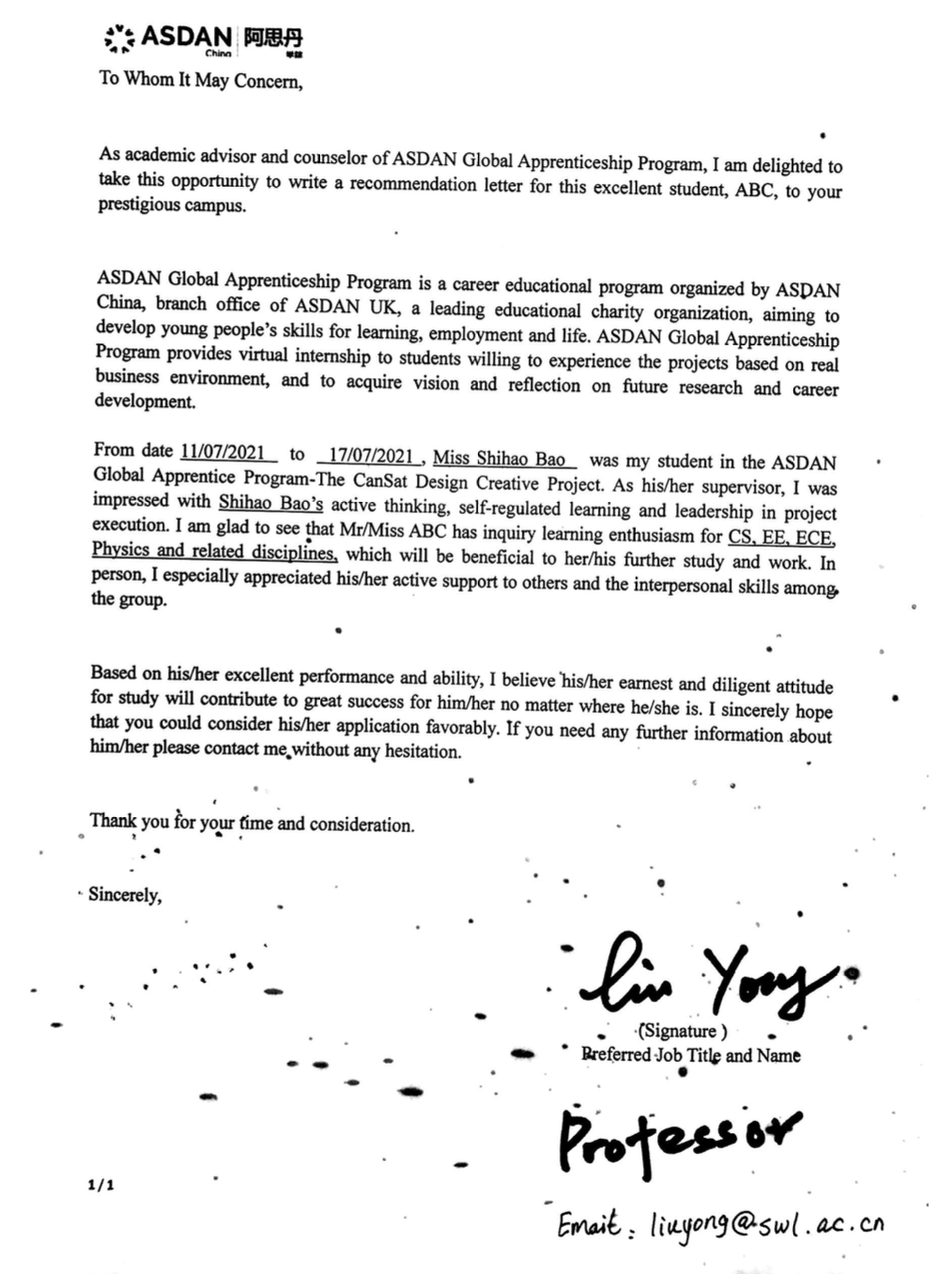 The only two students who got the recommendation letter from the professor