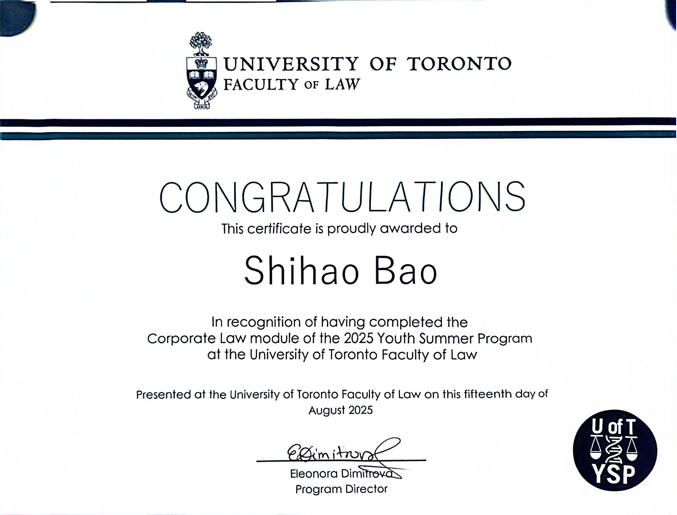 2025 University of Toronto Corperate Law program